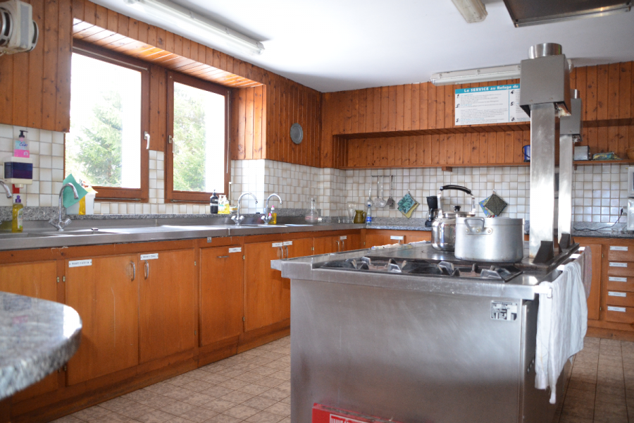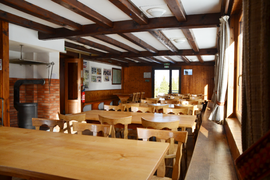 Le chalet est équipé de 2 réfectoires spacieux pouvant accueillir au total 80 personnes, et d’une cuisine moderne et fonctionnelle, entièrement équipée.
