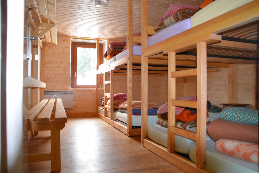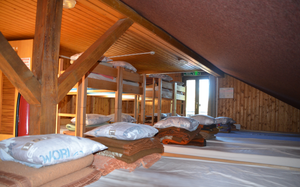 Le refuge a une capacité de couchage de 48 lits répartis en 4 dortoirs chauffés, de 8 à 16 couchages chacun, situés à l’étage. Pour chaque lit, vous disposez de deux couvertures, une housse de matelas, ainsi qu’un oreiller. Le linge de couchage n’est pas fourni, il vous faudra apporter vos draps et taie d’oreiller, ou un drap de sac (ou sac à viande) comme il est coutume de faire dans les refuges de montagne. Vous trouverez également des sanitaires d’appoint à l’étage avec WC et lave-mains (sauf l’hiver).