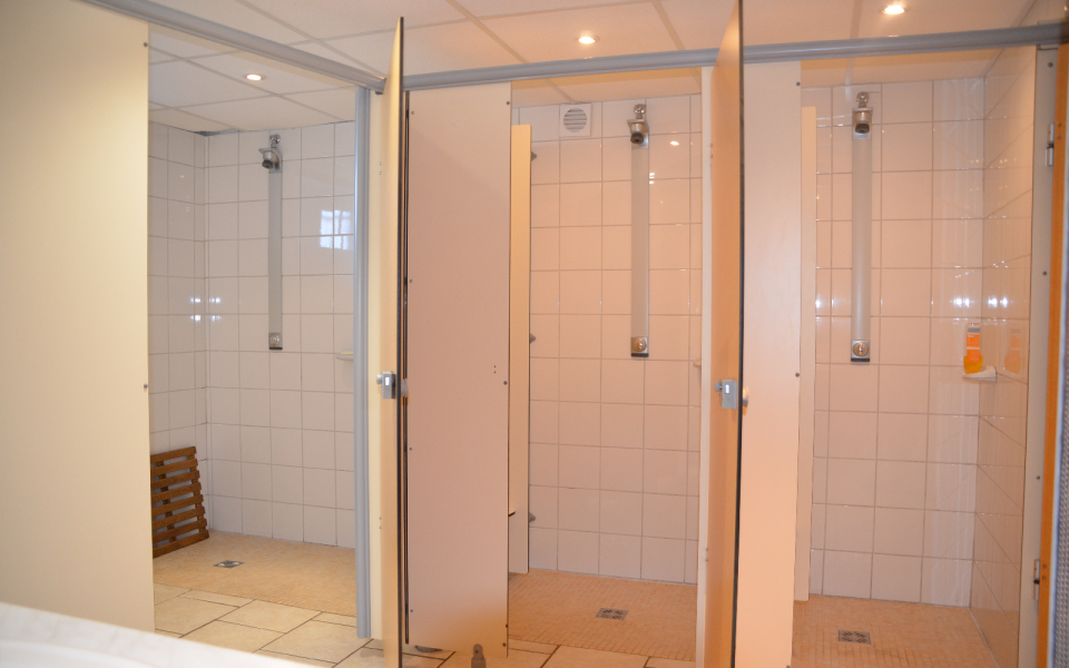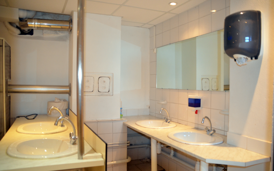 Les sanitaires rénovés, installés au sous-sol, sont munis de WC séparés, de lavabos et de cabines de douche.